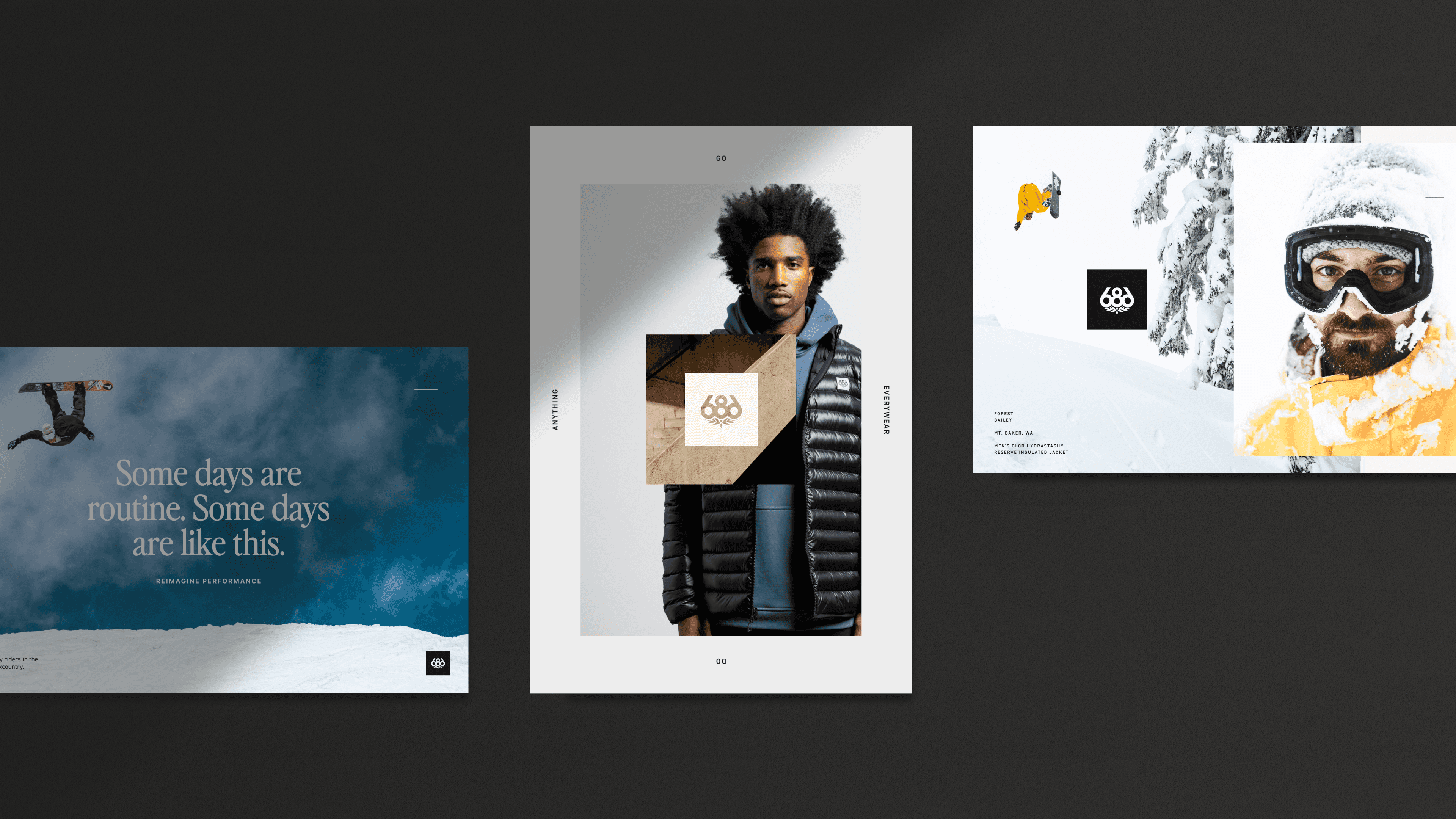 686 is an outdoor apparel company rooted in the mountain and urban crossover culture of snowboarding and Los Angeles. As the brand approached its 30-year mark, I was brought in by their marketing leadership to help clarify and evolve what 686 stands for, leading a discovery and design process to uncover core values, reimagine the visual identity, and define a cohesive brand system grounded in technical performance, authenticity, and spirit.