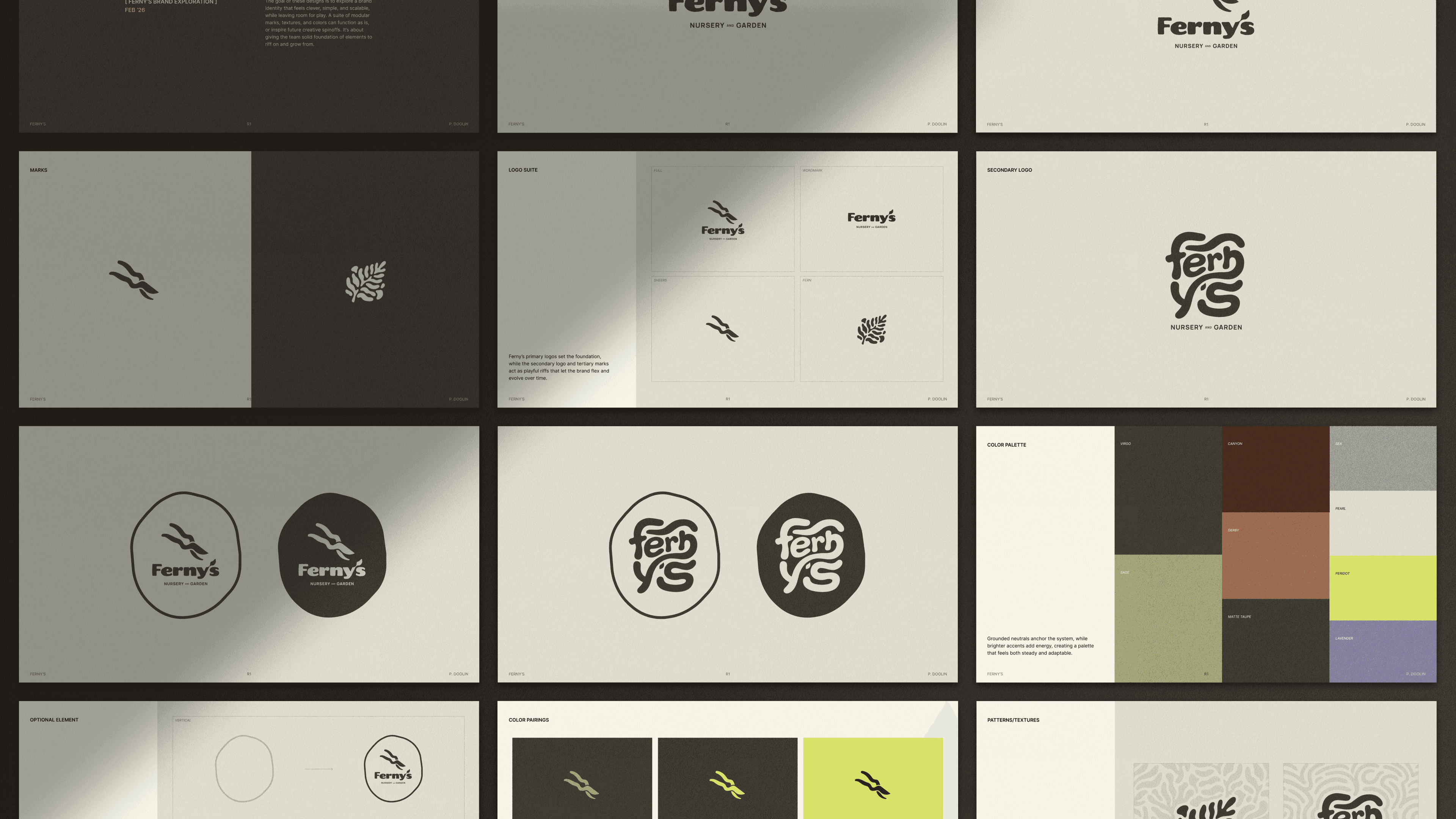 Ferny’s is a family-owned native plant nursery that I created a simple, flexible brand identity for. It’s a small, community-driven shop focused on native and edible plants, along with thoughtfully designed objects and spaces. The goal was to create something delightful and approachable that could grow with the business and its evolving needs over time. Projects like this are especially meaningful to me, offering a chance to support local businesses and contribute to something tangible and close to home.